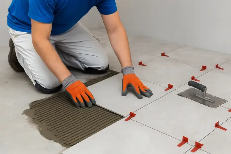 Хорошая пластичность готового раствора, что облегчает нанесение и позволяет быстро корректировать положение плитки.
