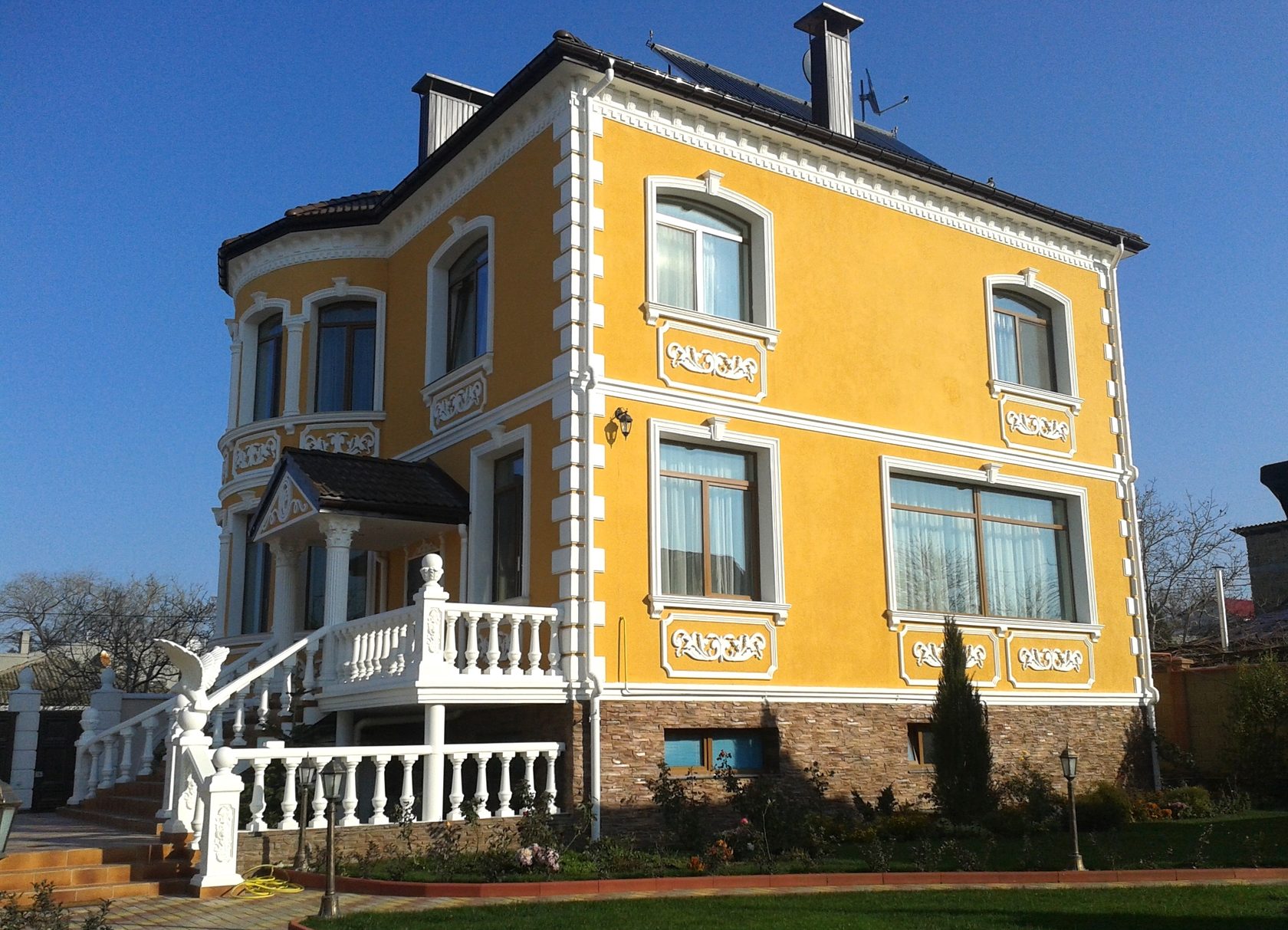 Декоративные элементы из тяжелого бетона специалисты «ТеплоМакс Дизайн Декора» успешно заменили современным и легким полистиролом. Который покрыт латексной массой с мраморной крошкой, придает прочность, стойкость к атмосферным осадкам, цветоустойчивость и эстетику. Дизайнер по архитектурному декору поможет выбрать красивую «фасадную лепнину» для любого дома. Кроме того, фасадный декор на заказ является не только декоративным элементом, но и функциональным дополнением.