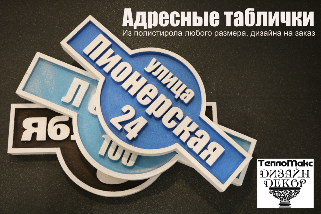 Пн. – Пт.: с 9:00 до 17:00 teplomax39@mail.ru +7 (900) 351-52-07 (Бухгалтерия) Адресные таблички на заказ любого размера и дизайна из полистирола, пластика любого размера и цвета.